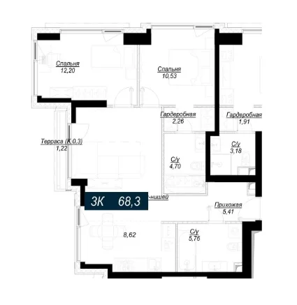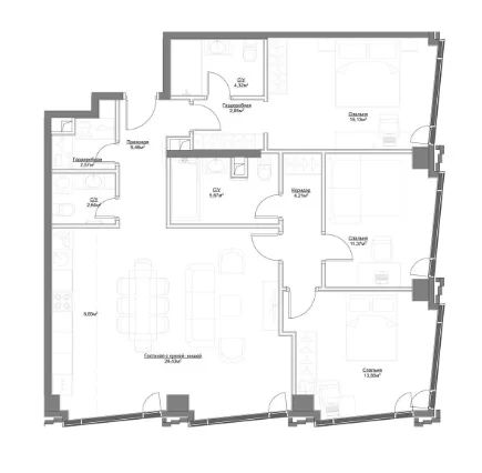 - 3 комнаты от 92 м2