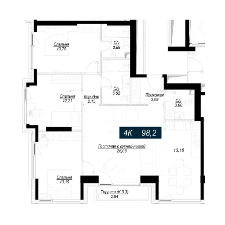 - 4 комнаты от 118 м2